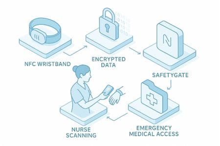 ID Care NFC odpowiada na te problemy, zapewniając jednoznaczną identyfikację, dostęp do danych zdrowotnych offline oraz automatyczne wsparcie bezpieczeństwa w placówce.
