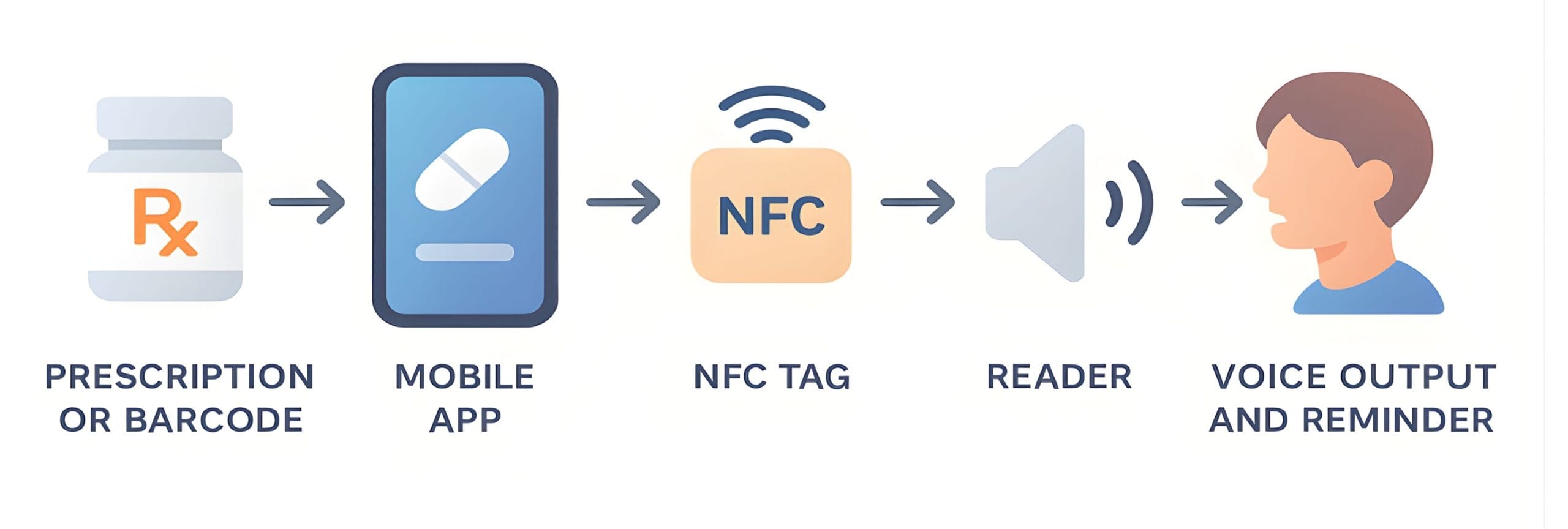 System umożliwia natychmiastowe, głosowe i czytelne odczytanie informacji o leku po zbliżeniu opakowania do czytnika lub telefonu z NFC.